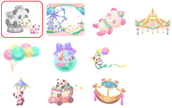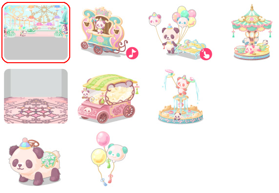 ★パンダランドの壁 ☆煌煌★ストリートオルガン(ネイロアイテム) ☆風船配りの煌煌(アクションアイテム) ☆たのしいパンダカルーセル パンダランドの床 煌煌★ポップコーンワゴン 煌煌★ファウンテン かわいいパンダライド ふわふわパンダバルーン