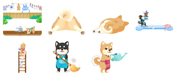 ★しばがいる日常の壁 黒しばの添い寝床 たたんだつもりの茶しば 美味しい?ケーキ作り 茶しばのお片づけ食器棚