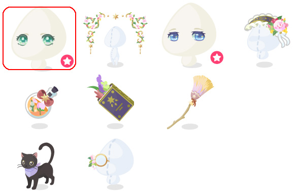★揺らめくグリーンアイ(顔パーツ) ☆魔女のハーブフレーム ☆師匠の穏やかアイ(顔パーツ) ☆魔女のハーブヘッドドレス 魔女のハーブフラスコ 押し花しおりの調合本 見習い魔女の箒 傍で見守る黒猫 優しい師匠の花付モノクル