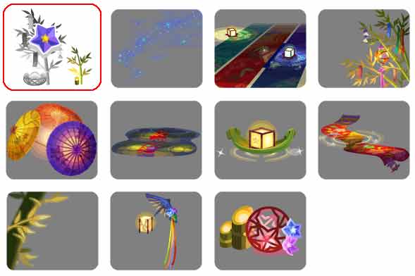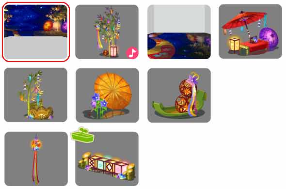 ★織姫星の願いの壁 ☆願いを込めた七夕笹(ネイロアイテム) ☆織姫星の願いの床 ☆七夕夜の待ち合わせ傘 夏夜に揺れる竹お風呂 桔梗の和傘トイレ 天の川を渡る笹船 瞬く七夕飾り 夜を照らす灯篭プランター