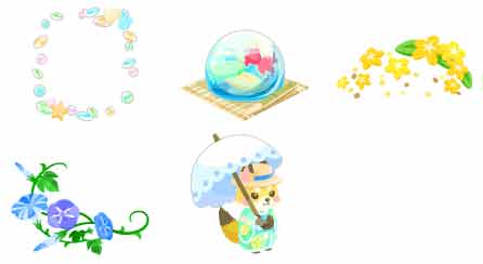 夏姫のお庭の壁 夏姫のお庭の床 夏姫の水菓子のお風呂 夏姫のかご活花のトイレ 夏のおともだちきつね