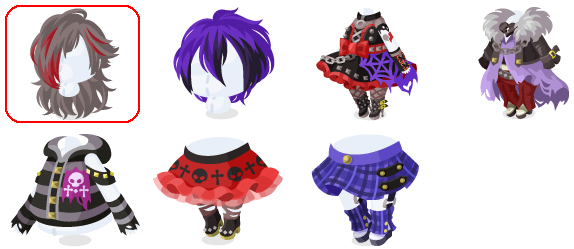 ★ロックオンアシメロング ☆ロックヴァイオレットヘア メタリックロックワンピ ダークネスロックスタイル スタッズボーダーパーカー スカルレッドチュール セパレートチェックボトム
