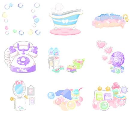 ☆カラフルバスシャボンの空 ☆あったかガーリーバスの星 ☆ぷくぷくバスシャボンの丘 ガーリーテレフォンのドア バスルームステップ くるくるシャボンファン バスルームデコレーション のんびりバスタイム ガーリーバスアメニティ