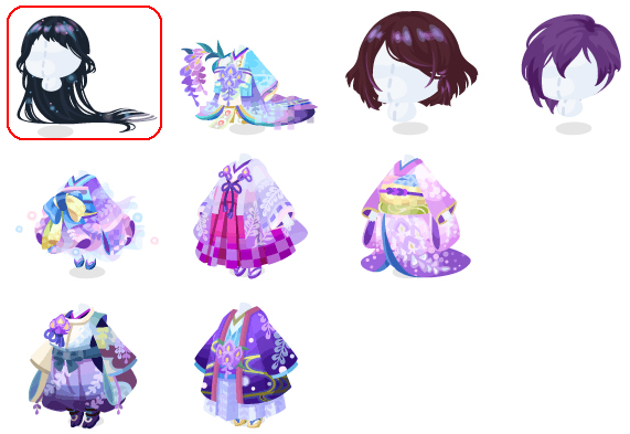 ★たまゆらの藤姫ロング ☆たまゆらの藤姫十二単 ☆夜藤の巫女ボブ ☆藤色の君ショート たまゆらの夢幻衣 夜藤の巫女装束 幻想藤の裾引き着物 藤色の君の幻想水干 幻想の藤袴