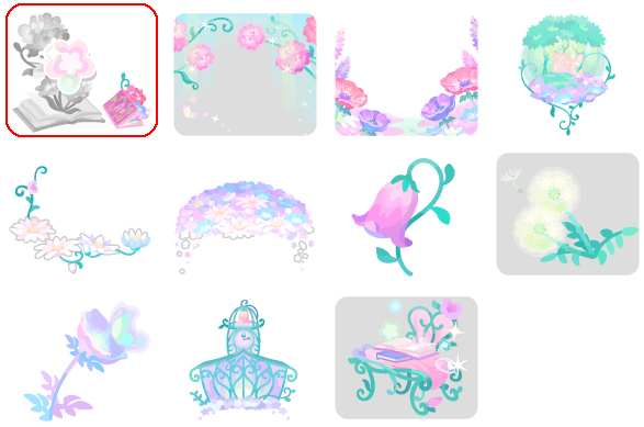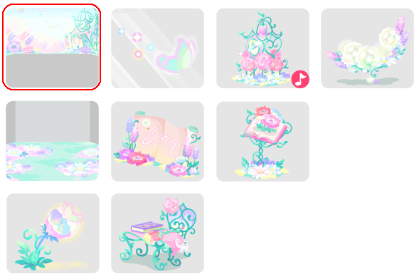 ★フェアリーアカデミアの壁 ☆妖精たちの魔法 ☆アカデミアに響くチャイム(ネイロアイテム) ☆そよぐ綿毛ベッド フェアリーアカデミアの床 妖精たちの魔法の授業 花の魔法にかかった教科書 ソーサリーフラワートイレ アカデミアの授業机
