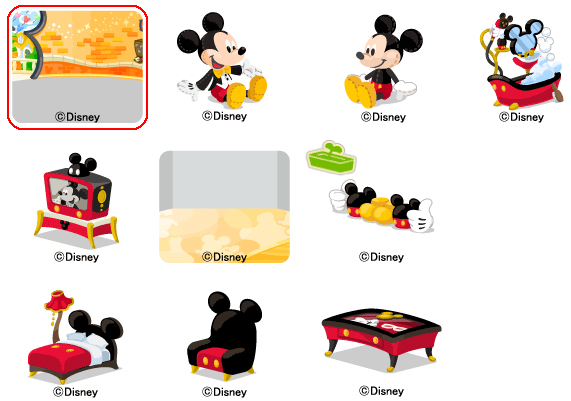 ★黄色いお家の壁 ミッキー ☆ぬいぐるみ大 ミッキー ☆ぬいぐるみ小 ミッキー ☆お風呂 ミッキー ☆テレビ ミッキー 黄色いお家の床 ミッキー プランター ミッキー ベッド ミッキー ソファ ミッキー テーブル ミッキー