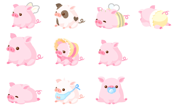 てんしのてんちゃん おしゃまなぶちちゃん すやすやはっちゃん おむつのすずちゃん げんきなごろうちゃん おしゃれなきららちゃん こぶたのはなちゃん おねむのたろちゃん あまえんぼしろちゃん おしゃぶりさくらちゃん