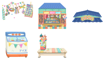 ☆昔懐かしいおもちゃの空 空想駄菓子屋の星 駄菓子屋の看板の丘 アイスケースのドア 駄菓子屋の縁側階段