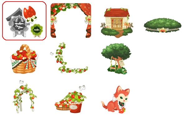 ★猫いちご看板の木 No.805 猫苺パンケーキ猫いちごの実 ☆いちご小窓の向こうの空 ☆子猫と暮らすおうちの星 草むらいちごリボンの丘 いちごバスケットのドア いちごのツタステップ ひと休みいちごブランコ いちごのガーデンアーチ 盛りだくさんいちごバケツ 子猫ジェニーのいちご遊び