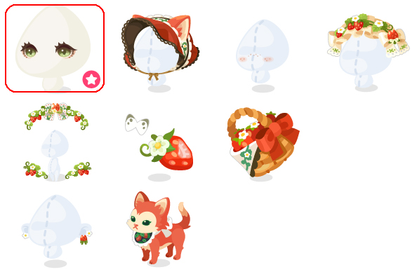 ★つよがり子猫アイ(顔パーツ) ☆ジェニーの猫耳ボンネット ☆つよがり少女のそばかす ☆猫いちごヘッドドレス 猫いちごのリボンフレーム 摘みたてかじりいちご いちご摘みバスケット 猫いちごピアス ついてくる子猫ジェニー