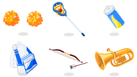 ☆ラブリーエールポンポン 爽やかラクロススティック 休憩のドリンクボトル 青春部活バッグ 百発百中の和弓と矢 吹奏楽部の元気なチューバ