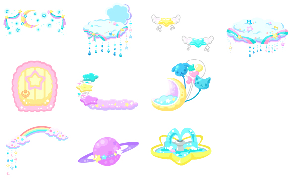 ☆ほんわり星月夜の空 ☆ふわふか雲の星 きらきらフライングスター ふわふか雲の丘 ふわもこ星のドア ふんわりスターステップ きらゆらバルーン 虹とふわふわ雲のフェンス コロコロプラネット 星揺れる噴水