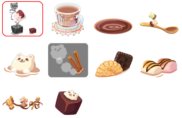 【イベントで復刻】 ・2017.09.12〜09.26 『6周年パステルパーティー』 ・ 2019.11.30〜2019.12.15『ポケコロクリスマス』 【ピックアップガチャで復刻】 ・2018.10.21〜2018.11.04, 2021.11.11〜2021.11.11 『ホットチョコレートCafe』 ( マシュマロココアの木・あったかココアマグの星・香り立つココアの丘 とろけるマシュマロくま・さくさくビスケット・ぷかぷかマシュマロ ショコラくまのドア・ふわふわマシュマロ) ・2018.12.08〜2018.12.17 『ぬくぬくあったかウィンター』 (ココアラテショート)