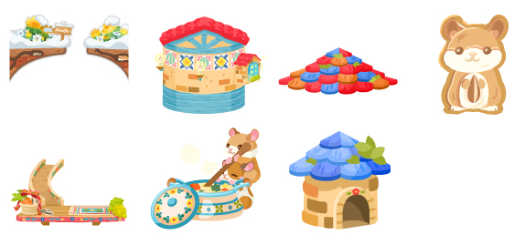 ☆春待ちのあなぐらの空 ☆憩いのあったかハウスの星 あったかハウスの屋根の丘 木彫りのハム助ドア ころころ滑り台ステップ ぐつぐつシチュー手作り中 秘密の屋根裏への入り口