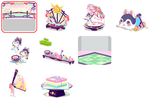 ★おひな様の冠リボンの木 No.784 菱餅ちらし寿司ちりとてしゃん鈴の実 ☆ちりとてしゃんひな祭の空 ☆ぼんぼりフィーバーの星 ☆りんりん♪宴の扇子屏風 ほろ酔い犬張り子*ポチ どどんぱ犬張り子*ミケ わくわく小上がり畳の丘 犬張り子とつるし雛ドア おっとっと!菱餅の階段 賑やかひな楽器の音色