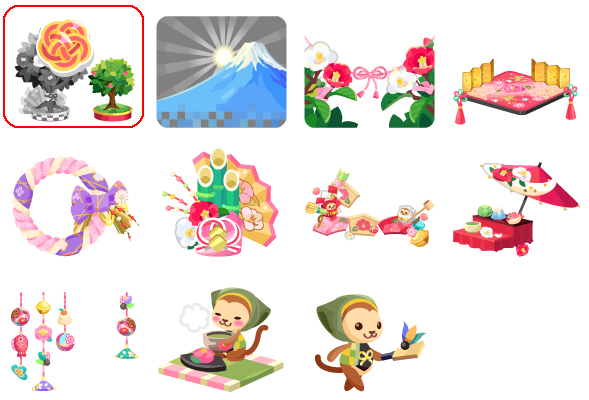 ★悠久の桃源郷の壁 ☆白虎を祀る祭壇(アクション) ☆朱雀が彩る寝台 ☆桃の香る玄武風呂 悠久の桃源郷の床 白虎と戯れる 秘伝を記す青龍の文机 伝説の宝玉プランター たゆたう大輪の蓮