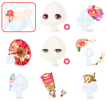 ★新春椿のファーショール ☆新春乙女の瞳(顔パーツ) ☆大輪椿の華やかかんざし ☆鶴舞う真紅の錦傘 新春男児の瞳(顔パーツ) 椿扇の水引飾り 一重椿のつまみかんざし 新春さるぼぼ羽子板 頭のせさるぼぼ