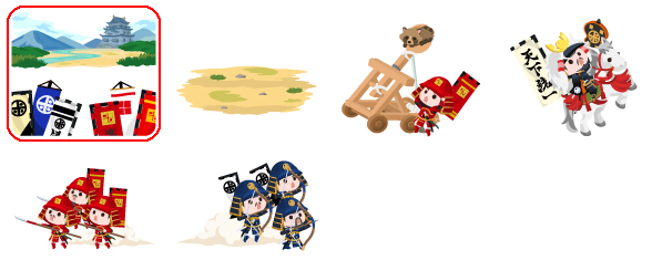 ★ポケ狭間の合戦の空 ポケ狭間の合戦場の丘 はちゃめちゃ投石機 目指せ天下統一大将 かけだし槍兵 打ち落とせ弓兵