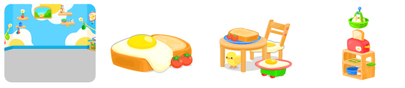 ☆たのしく朝ごはんの壁 トースト目玉焼きベッド たのしく朝ごはんテーブル トースターとタマゴ棚