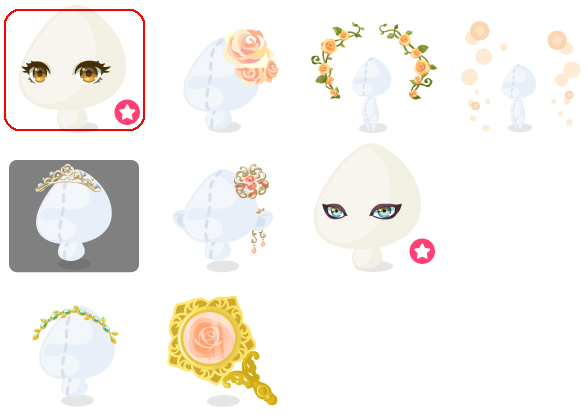 ★光を宿す美女の瞳(顔パーツ) ☆魔法に染まるバラの髪飾り ☆咲き誇るバラのアーチ ☆美女を包む魔法の光 煌めく魔法のティアラ ルビーローズイヤーカフ 美女を見つめる王子の瞳(顔パーツ) エメラルドカチューシャ 魔法のバラ手鏡