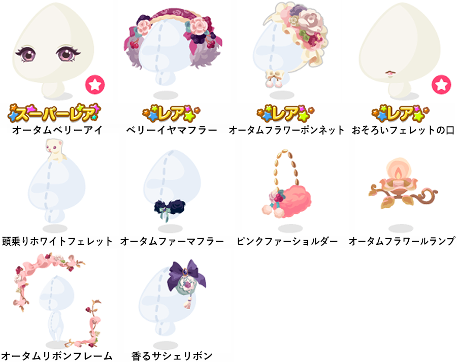 ★オータムベリーアイ(顔パーツ) ☆ベリーイヤマフラー ☆オータムフラワーボンネット ☆おそろいフェレットの口(顔パーツ) 頭乗りホワイトフェレット オータムファーマフラー ピンクファーショルダー オータムフラワールランプ オータムリボンフレーム 香るサシェリボン
