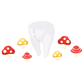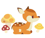 おすわり子鹿ときのこ