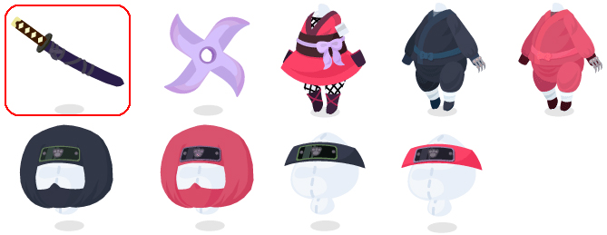 ★手持ちにんにん刀 ☆手持ちにんにん手裏剣 ☆あでやかくのいち衣装 忍の黒装束 忍の紅装束 忍の猫の手印頭巾 忍の猫の手印頭巾 猫の手印額あて 猫の手印額あて ガマにんガマの助 ガマにんガマの助 サックリ手裏剣 サックリ手裏剣 にんにん煙幕 にんにん煙幕 手つなぎにんにゃん・白 手つなぎにんにゃん・黒