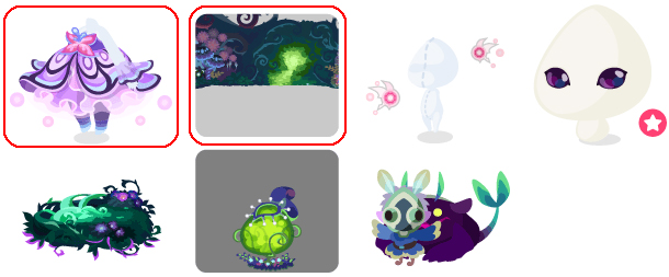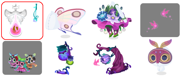 ★怪しげに光る妖精の羽 ★いたずら妖精の瞳(顔パーツ) ☆森の小さな住人 迷いの森の床 迷いの森の旅人 迷い込む植物のステップ 妖精文字の謎の石碑