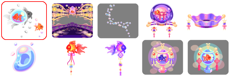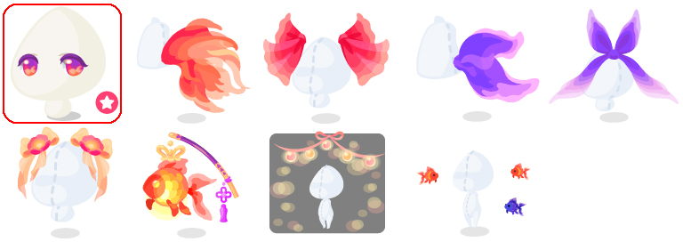 ★金魚天女の瞳(顔パーツ) ☆金魚天女の華やか尾びれ ☆金魚天女の華やかリボン ☆紫紺金魚のたおやか尾びれ 紫紺金魚のたおやかリボン 宵灯りの花髪飾り 宵宴の金魚提燈 宵宴の提燈飾り ふわふわ天女のお供たち