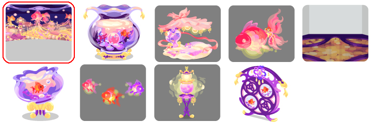★金魚宵宴の壁 ☆祭祀の神輿鉢 ☆天女の寝床 ☆宵宴の主 金魚宵宴の床 祭祀の手水鉢 天女のお供たち 宵灯りの泡灯篭 宵灯りの金魚衝立