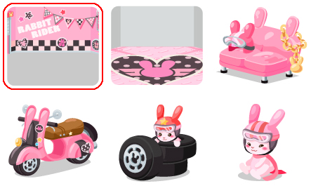 ★ライダーガレージの壁 ライダーガレージの床 ラビットライダーソファ ラビットライダーバイク ひょっこりラビット 相棒ラビット