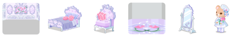 ☆4月姫のサロンの壁 4月姫のベッド 4月姫のソファ 4月姫のサロンの床 4月姫のスタンドミラー 4月のおともだちくま