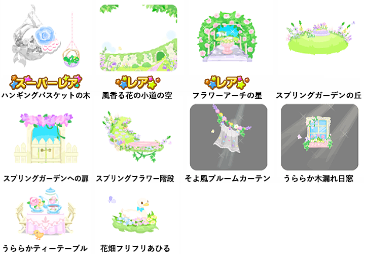 ★ハンギングバスケットの木 No.557 フラワーマフィンサンドスプリングブルームの実 ☆風香る花の小道の空 ☆フラワーアーチの星 スプリングガーデンの丘 スプリングガーデンへの扉 スプリングフラワー階段 そよ風ブルームカーテン うららか木漏れ日窓 うららかティーテーブル 花畑フリフリあひる