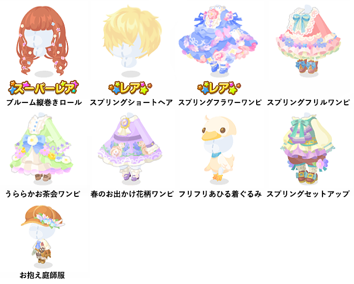 ★ブルーム縦巻きロール ☆スプリングショートヘア ☆スプリングフラワーワンピ スプリングフリルワンピ うららかお茶会ワンピ 春のお出かけ花柄ワンピ フリフリあひる着ぐるみ スプリングセットアップ お抱え庭師服