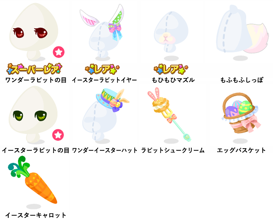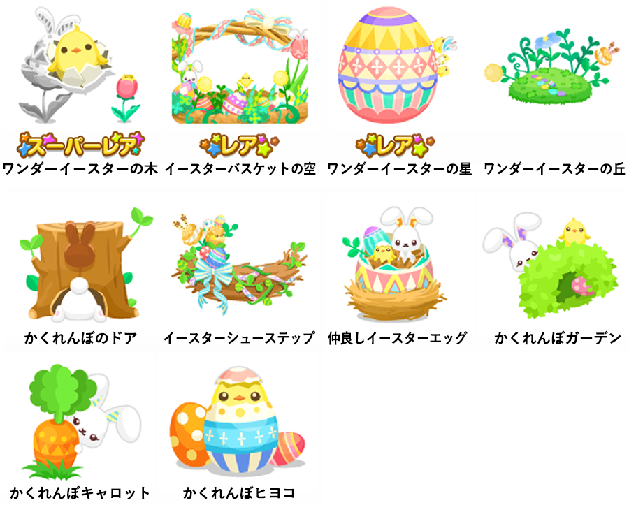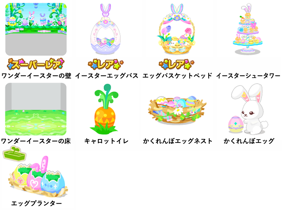 ★ワンダーイースターの壁 ☆イースターエッグバス ☆エッグバスケットベッド イースターシュータワー ワンダーイースターの床 キャロットイレ かくれんぼエッグネスト かくれんぼエッグ エッグプランター