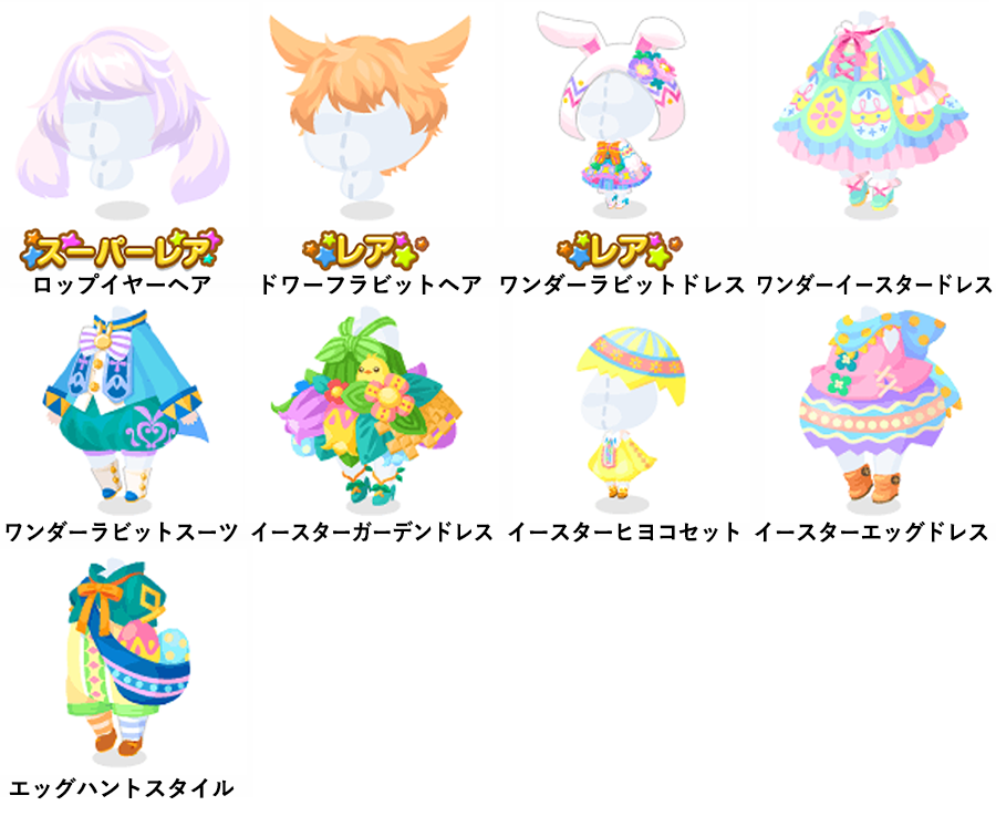 ★ロップイヤーヘア ☆ドワーフラビットヘア ☆ワンダーラビットドレス ワンダーイースタードレス ワンダーラビットスーツ イースターガーデンドレス イースターヒヨコセット イースターエッグドレス エッグハントスタイル