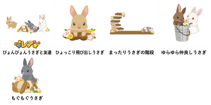 ☆ぴょんぴょんうさぎと友達 ひょっこり飛び出しうさぎ まったりうさぎの階段 ゆらゆら仲良しうさぎ もぐもぐうさぎ