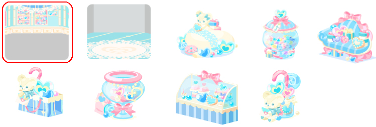 ★キャンディショップの壁 キャンディレースの床 ☆ふわふわマシュマロベッド ☆キャンディボトルバス 山積みプレゼントのソファ 入れる♪ショップバッグ キャンディグラストイレ ショップカウンター ときめきベアの置物