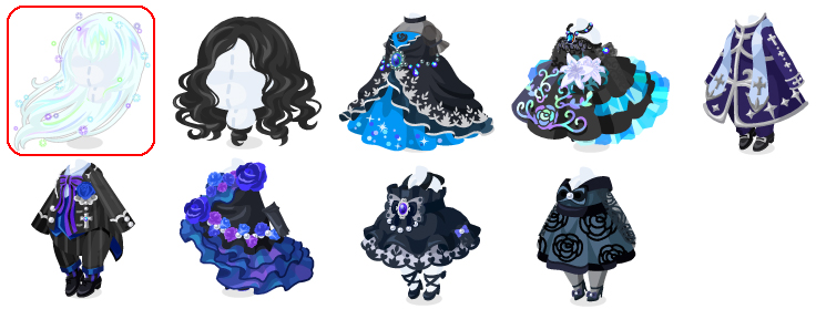 ★永遠を誓う蒼き瞳(顔パーツ) ☆漆黒のマリアベール 蒼百合の黒帽子 ☆黒真珠のティアラ 夜想曲に咲くブーケ 花運びの子黒豹 蒼に煌くキャンドル 白百合の髪飾り 夜想傘