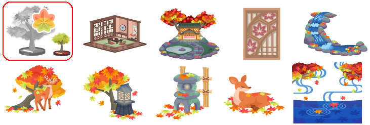 ★漆盆の練り切り紅葉の木 No.477 モミジビエ練り切り紅葉の実 ☆特別な日の貸切宿の星 紅葉色づく庭園宿の丘 紅葉模様の組子障子 秋の紅葉渓谷階段 鹿の佇む夜紅葉 紅葉を照らす灯篭看板 秋の夜長を灯す灯篭 散り紅葉にそっと待つ鹿 ☆紅葉舞い散る水辺の空