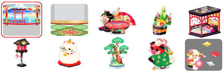 ★新春初詣二〇一五の壁 新春初詣二〇一五の床 逆さ富士を映すお屠蘇風呂 新春門松トイレ 黒漆の金梅ベッド 新年を照らす紅灯篭 幸せ招き猫鏡餅 新春松竹梅の盆栽 ☆迎春獅子舞演舞 ☆新春吉祥紙吹雪