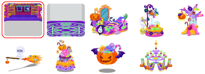 ★マジカル♪ハロウィンの壁 ☆マジカル♪ハロウィンの床 ☆おめかしハロウィンベッド 怪しい魔法薬のポッドバス お菓子のツリートイレ マミーのぷかぷかほうき マジカルケーキテーブル カボチャポッドチェア マジカルシャンデリア