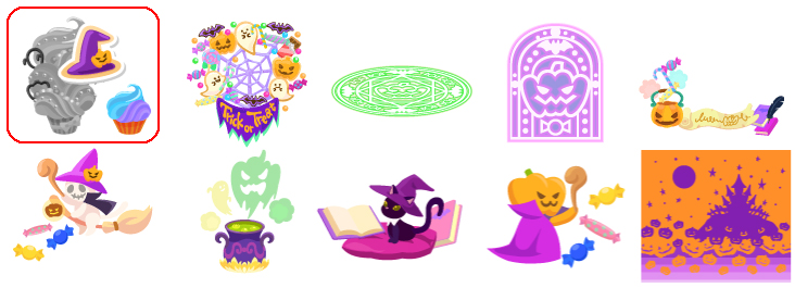 ★ハロウィンデコケーキの木 No.463 ハロウィン魔法学校パフェハロウィンクッキーの実 ハロウィンお菓子の星 ☆パンプキン魔法陣の丘 ドッキリ!魔法陣の扉 魔法のバケツステップ お菓子をトカゲに戻す先生 気まぐれ魔法実験鍋 学園長マダムマチルダ トカゲをお菓子にカボくん ☆魔法学園のハロウィン夜空