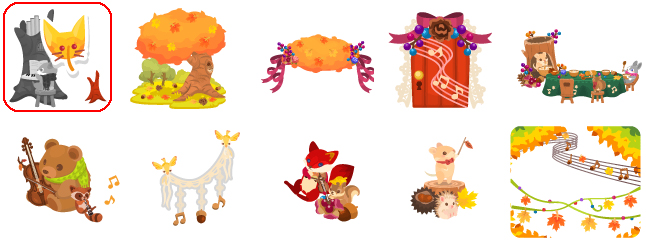 ★ハーベストフォレストの壁 ハーベストフォレストの床 レースハンモックベッド ☆森のシチューバス つむじ風の調べトイレ 森のパーティーテーブル ☆コントラバスを奏でるクマ 森のどうぶつ音楽隊 森の落ち葉のシンフォニー