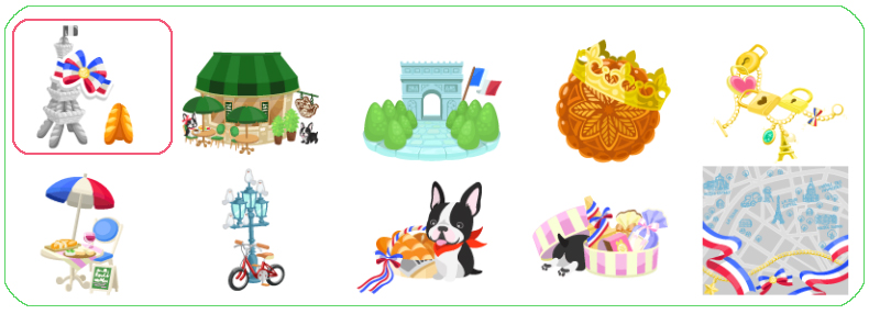 ★バケットタワーの木 No.447 スイートプチデジュネトリコロールリボンの実 恋が生まれるカフェの星 ☆憧れの凱旋門の丘 ガレットデロワのドア ポンデザールの鍵ステップ パリのカフェでゆったり 鳩が飛び立つパリの街灯 パン屋におつかいピエール ミシェルのお菓子探し ☆パリの地図の空