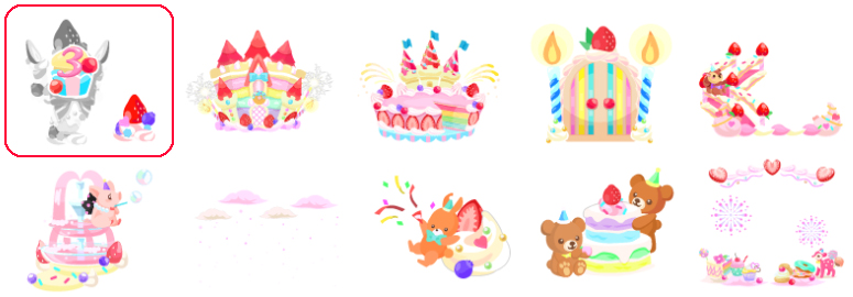 ★3周年キャンドルツリー No.446 3周年クロカンブッシュ3周年プチケーキの実 ☆3周年ケーキのお城の星 3周年たっぷりイチゴの丘 3周年キャンドル灯る扉 3周年リス吉スロープ階段 3周年ピグレットの噴水 3周年舞い散る粉砂糖雲 3周年のクラッカーうさぎ 3周年のケーキぐま ☆3周年パーティスカイ