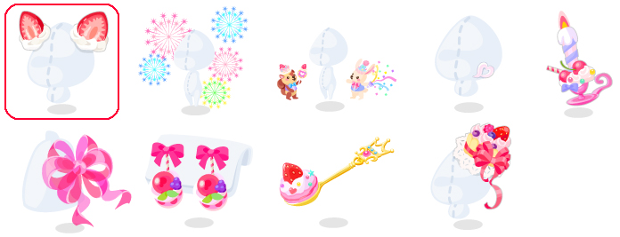 ★いちごホイップイヤー ☆3周年アニバーサリー花火 セレブレーションフレンズ ハートホイップチーク アニバーサリーキャンドル スイートキャンディリボン プチケーキイヤリング プチクラウンスプーン ☆ベリーケーキヘッドドレス