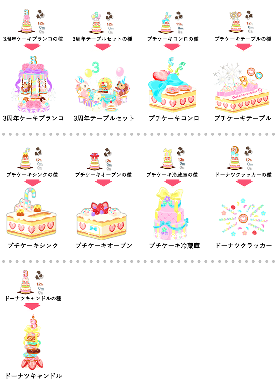 3周年ケーキブランコの種 → 3周年ケーキブランコ 3周年テーブルセットの種 → 3周年テーブルセット プチケーキコンロの種 → プチケーキコンロ プチケーキテーブルの種 → プチケーキテーブル プチケーキシンクの種 → プチケーキシンク プチケーキオーブンの種 → プチケーキオーブン プチケーキ冷蔵庫の種 → プチケーキ冷蔵庫 ドーナツクラッカーの種 → ドーナツクラッカー ドーナツキャンドルの種 → ドーナツキャンドル