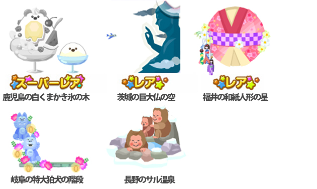 佐賀の気球 鳥取の因幡の白ウサギ 福島の喜多方ラーメン 栃木の華厳の滝