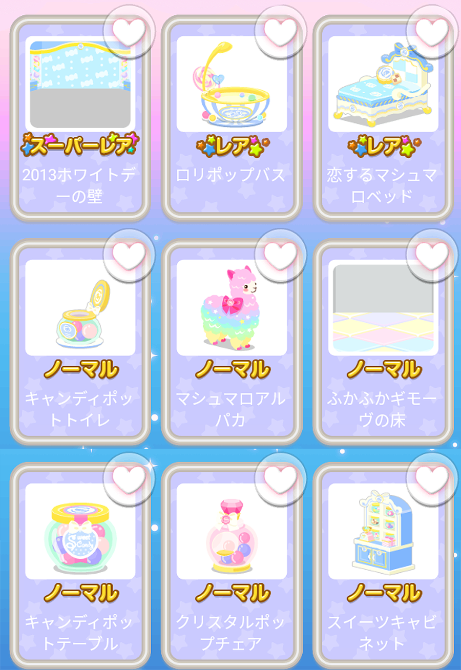 ★2013ホワイトデーの壁 ☆ロリポップバス ☆恋するマシュマロベッド キャンディポットトイレ マシュマロアルパカ ふかふかギモーヴの床 キャンディポットテーブル クリスタルポップチェア スイーツキャビネット